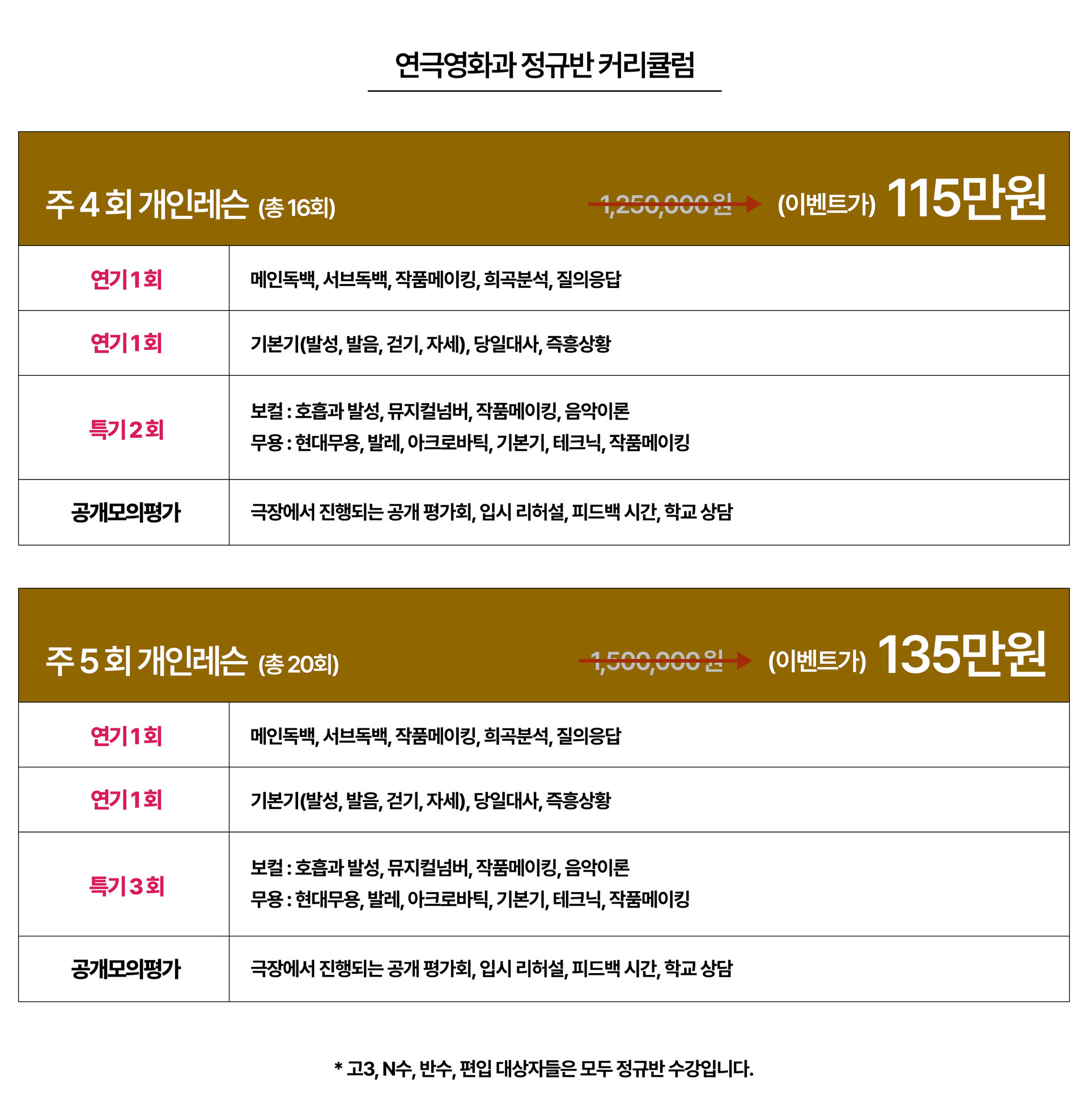 예비입시반 커리큘럼
