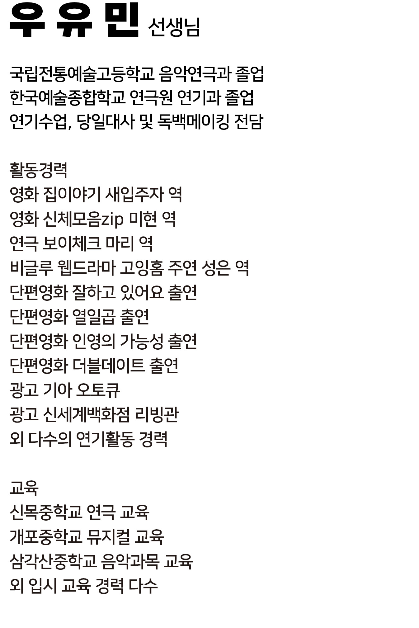 빈 액팅뮤지컬 연기학원